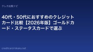 用途別おすすめ40代・50代におすすめのクレジットカード比較【2026年版】ゴールドカード・ステータスカードで選ぶ 40代・50代向けのおすすめクレジットカードを解説。収入・資産が増えるこの世代に最適なゴールドカード・プラチナカードの選び方と、ポイント・ステータス・保険の比較を紹介します。 2026.04.23用途別おすすめ