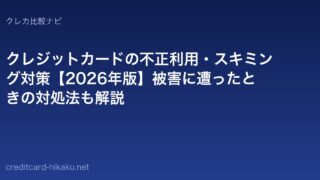 クレジットカード基礎知識クレジットカードの不正利用・スキミング対策【2026年版】被害に遭ったときの対処法も解説 クレジットカードの不正利用・スキミング被害を防ぐ方法を解説。セキュリティに強いカードの選び方と、万が一不正利用された際の補償・対処手順も紹介します。 2026.04.23クレジットカード基礎知識