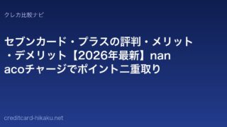 おすすめクレジットカードセブンカード・プラスの評判・メリット・デメリット【2026年最新】nanacoチャージでポイント二重取り セブンカード・プラスの評判・メリット・デメリットを徹底解説。nanacoチャージでポイントが貯まる仕組みと、イトーヨーカドーでの優待・公共料金のnanaco払いまで紹介します。 2026.04.23おすすめクレジットカード