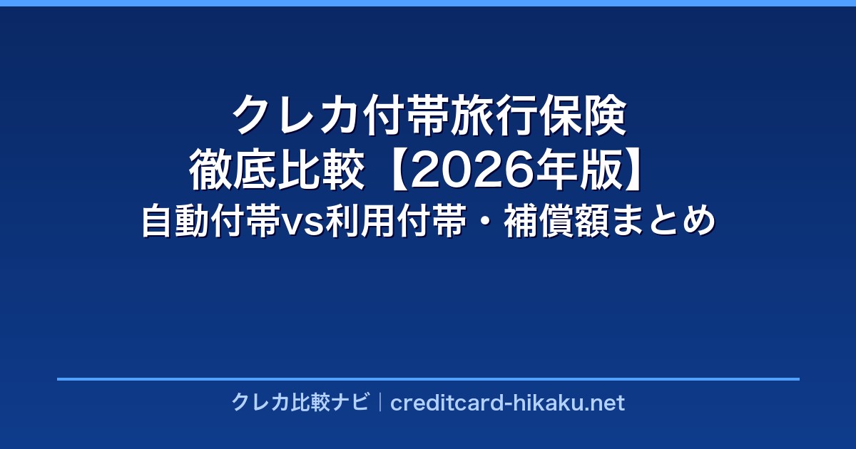 クレジットカードに付帯する旅行保険は、種類・補償内容・適用条件がカードによって大きく異なります。特に「自動付帯」と「利用付帯」の違いを理解しないと、いざという時に保険が適用されないケースがあります。