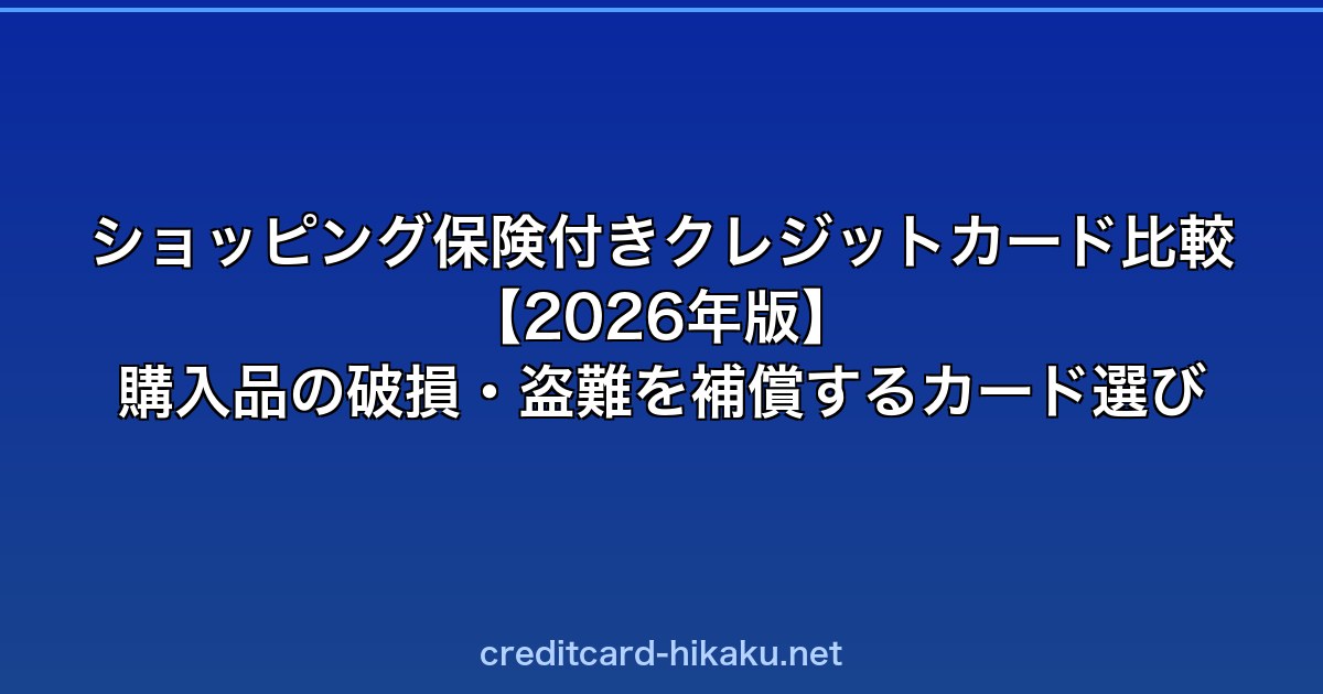 ショッピング保険(動産総合保険)とは、クレジットカードで購入した商品が破損・盗難などの被害に遭った場合に補償してくれる付帯保険です。高額な家電や貴重品を購入する際に役立ちます。この記事では、ショッピング保険が充実したクレジットカードを比較します。